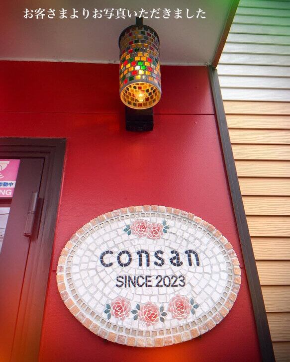 タイルや大理石などの素材を用いた、華やかなモザイクアートのネームプレートです。